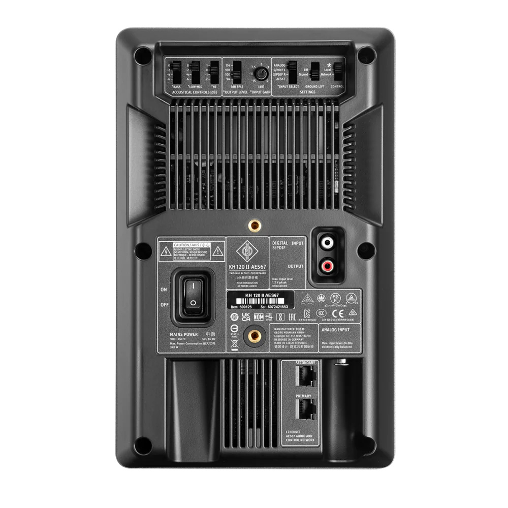 – O KH 120 II utiliza dois amplificadores (80W cada) para alimentar o woofer de 5,25″ e o tweeter de 1″, respectivamente, um mecanismo DSP integrado, um guia de onda de dispersão modelada matematicamente (MMD), uma entrada analógica e uma extensa gama de hardware de montagem opcional