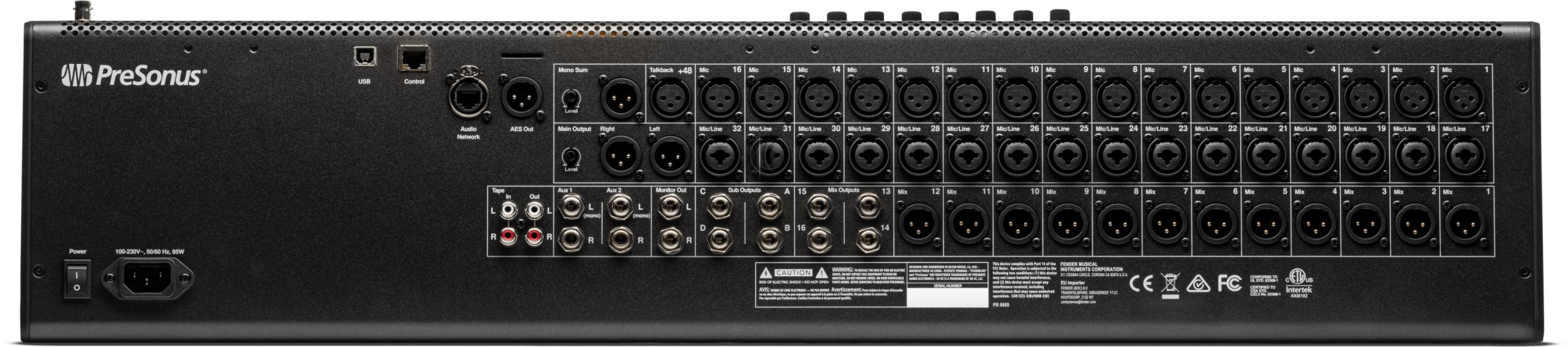 – Mixer digital de 40 canais e 26 barramentos com 33 faders motorizados, uma interface de áudio USB 64×64 e rede de áudio AVB com ‘protocolo Milan’